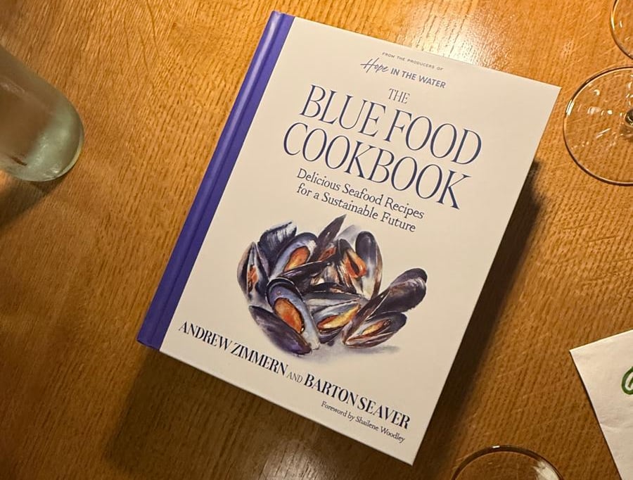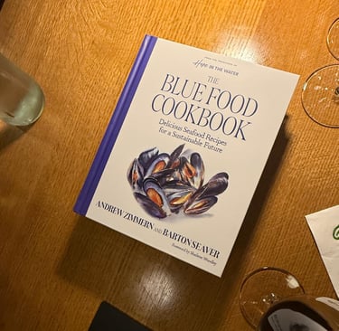Jennifer Bushman, Executive Director of Fed by Blue, was with us in person, helping frame the evening’s insights and offering real‑world context from the frontlines of sustainable seafood advocacy. She walked us through Seafood Scout, a new platform that helps consumers trace where their seafood comes from, who harvested it, how it was raised or caught, and whether it meets vetted sustainability standards, empowering people to make choices rooted in transparency and accountability. While the conversation unfolded, we were treated to a menu built from The Blue Food Cookbook, a collection of recipes and contributions from a global network of chefs dedicated to sustainable seafood systems.